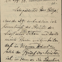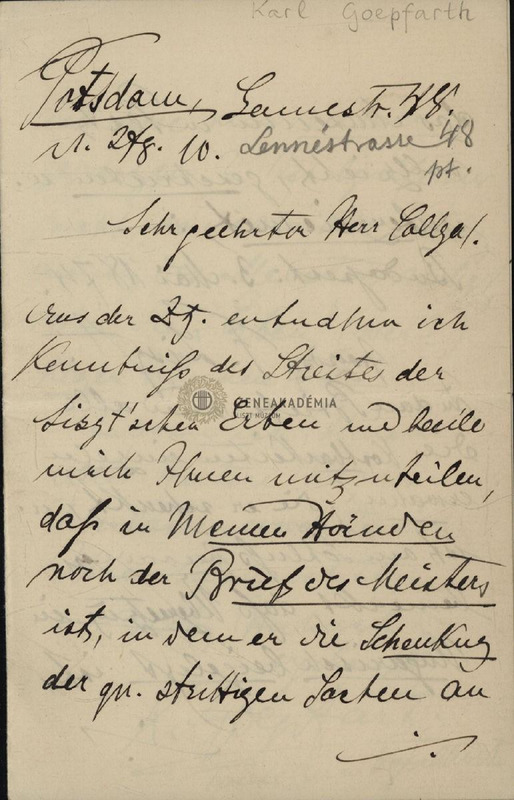 Német nyelven. Liszt hagyatékára vonatkozó levél (Budapest, 1874. május) van a birtokában a múzeumnak ajándékozott tárgyakról. Küldeni fogja Rudi Viole egy kórusművét.