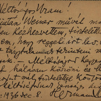 Időközben Weiner Leó Farsang c. művét megkapta, köszöni, előző levele tárgytalan.