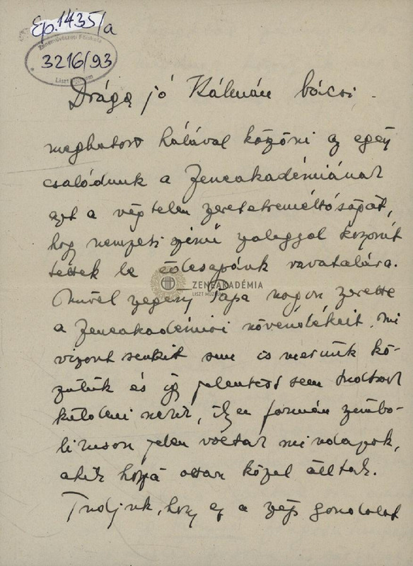 dr. Hoffmann Edith levele Isoz Kálmánhoz