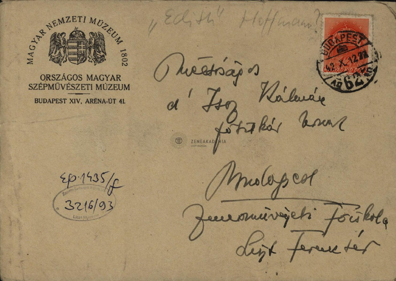 dr. Hoffmann Edith levele Isoz Kálmánhoz