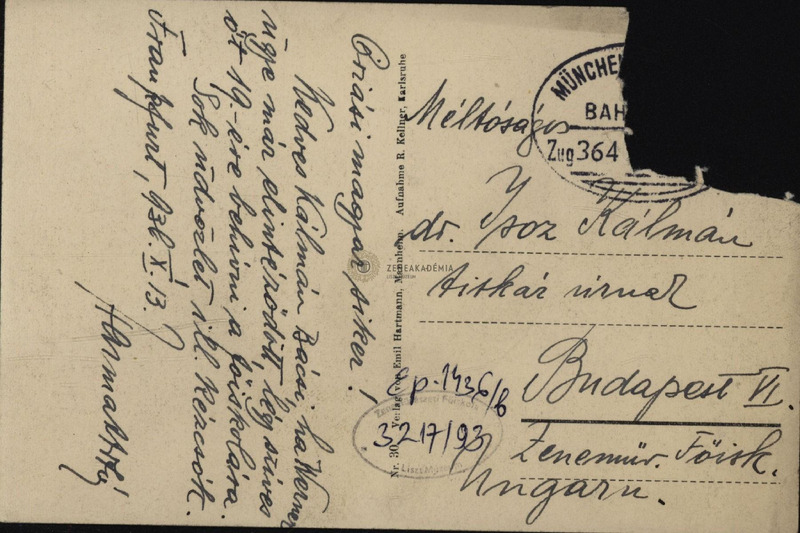 Harmat Artúr képeslapja Isoz Kálmánhoz