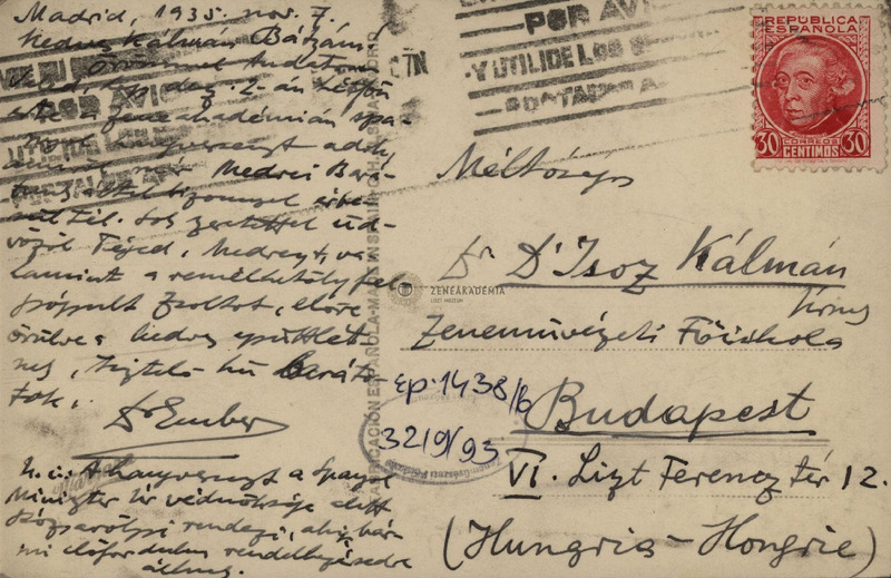 - dr. Ember Nándor képeslapja Isoz Kálmánhoz
