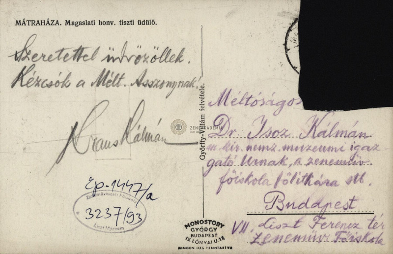 - Kraus Kálmán képeslapja Isoz Kálmánhoz