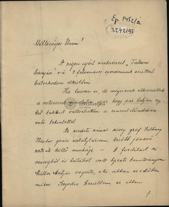 - Faluni bányász c. operájának énekszólamait küldi. Kérések.