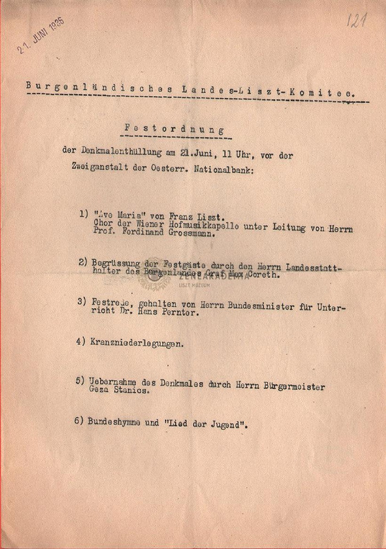 - A kismartoni Liszt-ünnepségek műsora.