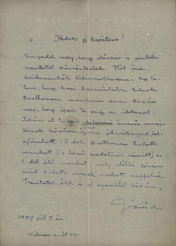 Maróti Géza levele Isoz Kálmánhoz