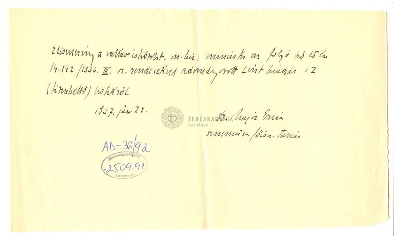 - A Franz Liszt Gesammelte Ausgabe köteteinek ajándékozásáról szóló értesítések, elismervények.
