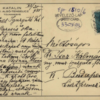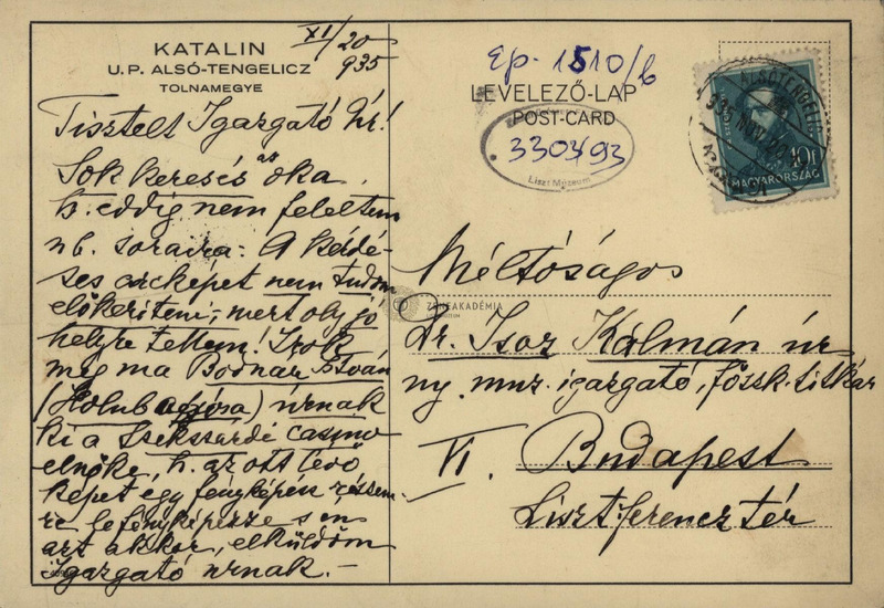 - báró Schell Józsefné gróf Sigray Klára képeslapja Isoz Kálmánhoz