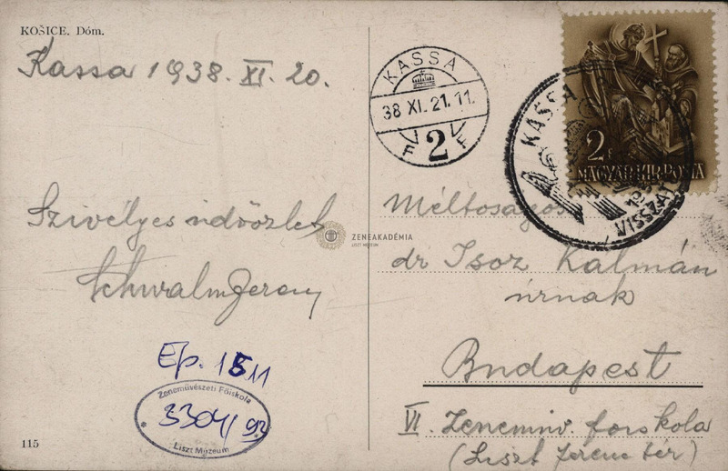 - Schwalm Ferenc képeslapja Isoz Kálmánhoz