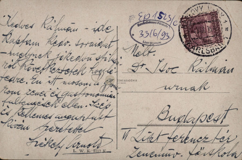 - Székely Arnold képeslapja Isoz Kálmánhoz