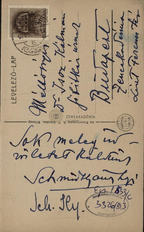 Schmidthauer Lajos képeslapja Isoz Kálmánhoz