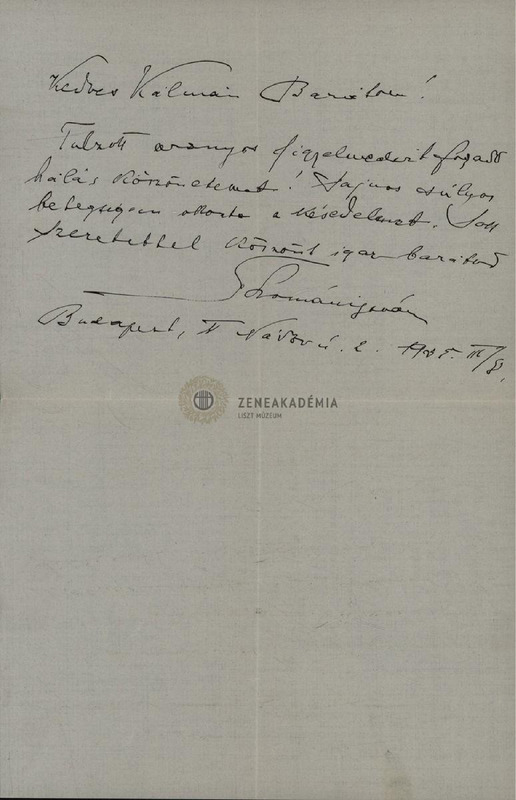 Thomán István levele Isoz Kálmánhoz