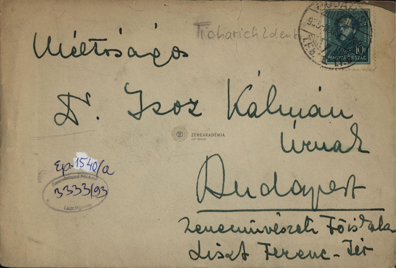 Ticharich Zdenka levele Isoz Kálmánhoz