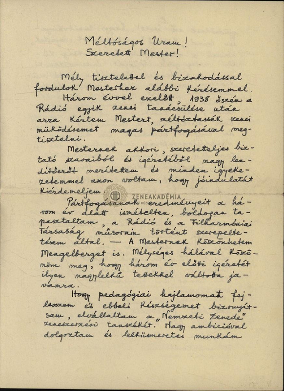 - A Zeneművészeti Főiskola egyik zeneszerzés tanszékére pályázik.