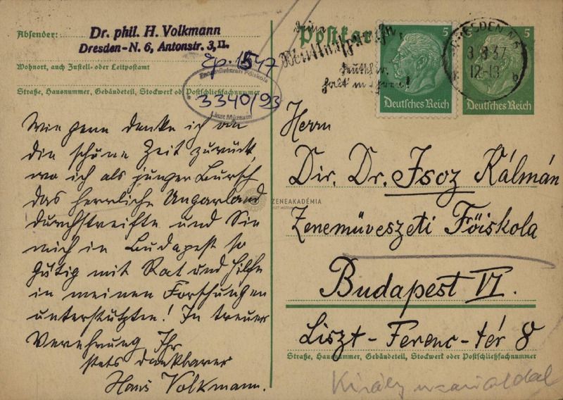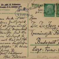 Hans Volkmann levelezőlapja Isoz Kálmánhoz