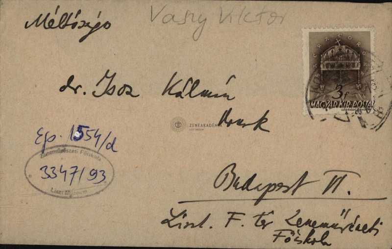 - Vaszy Viktor levele Isoz Kálmánhoz