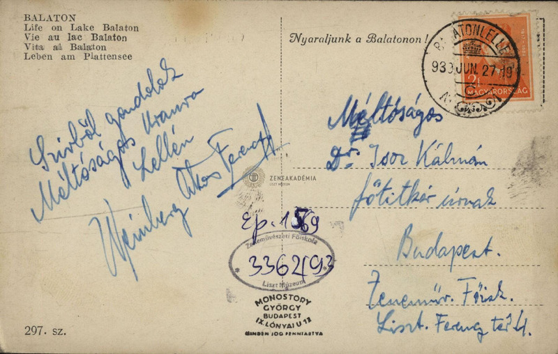 - Weinberg Ákos Ferenc képeslapja Isoz Kálmánhoz