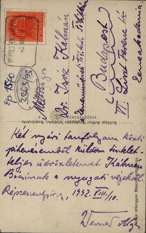 - Werner Alajos képeslapja Isoz Kálmánhoz