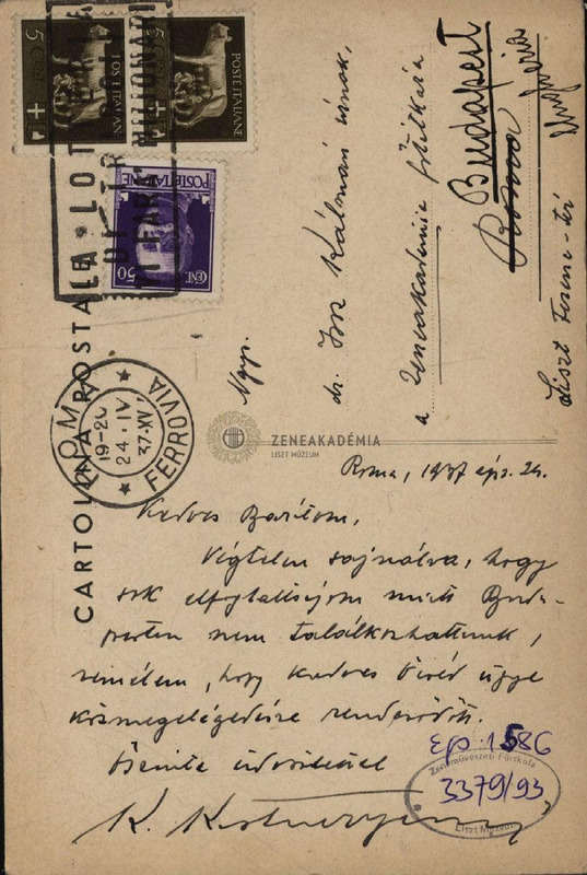 Sajnálja, hogy elfoglaltságai miatt Budapesten nem találkozhattak. Reméli, hogy címzett öccsének ügye rendeződött. Képen: római Magyar Intézet.