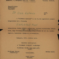 Értesítés tiszteletbeli taggá választásáról. Stencilezett, név és tagság zöld tintával kitöltve. Aláírások gépelve.