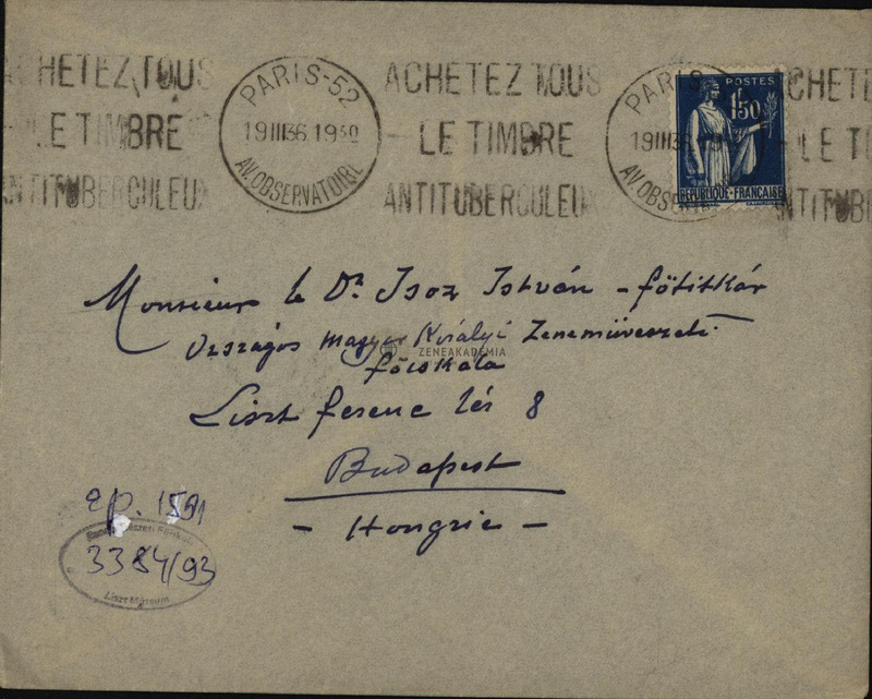 Szmrecsány Miklós barátja. Fiát ajánlja címzett figyelmébe, aki koncertet ad az Akadémia kistermében és előadást tart az Opera előcsarnokában Balogh József, a Nouvelle Revue de Hongrie főszerkesztőjének jelenlétében. Jó lenne, ha elmenne rá, és írna is róla.