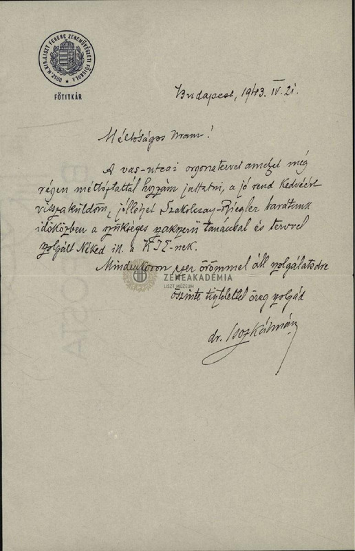Isoz Kálmán levele Biró György miniszteri tanácsoshoz