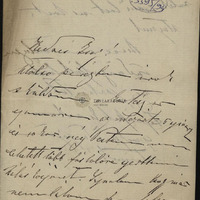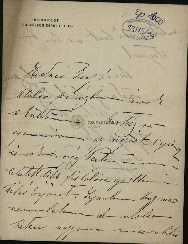 - Levélpapír bal felső sarkában nyomtatva: Budapest VIII. Múzeum körút 10. II. 10. Utolsó pillanatban küld valamit. Olvashatatlan kézírás és aláírás, befejezetlennek tűnik.