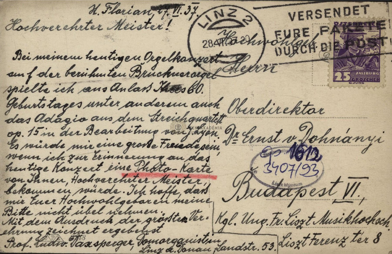 - Ludwig Daxsperger képeslapja Dohnányi Ernőhöz