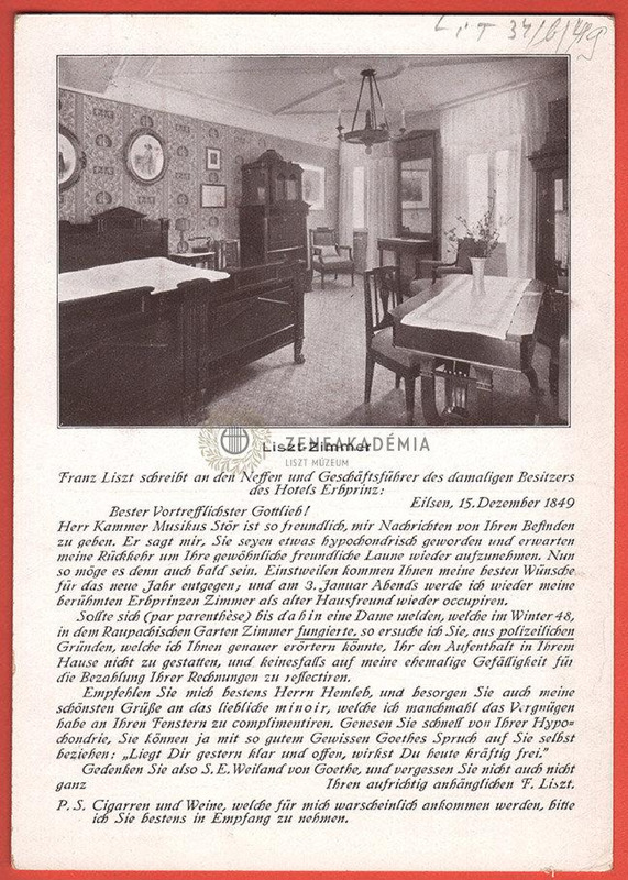 - A lapon látható egy fénykép a szobabelsőről és Liszt egy 1849-ben ott íródott levelének szövege.