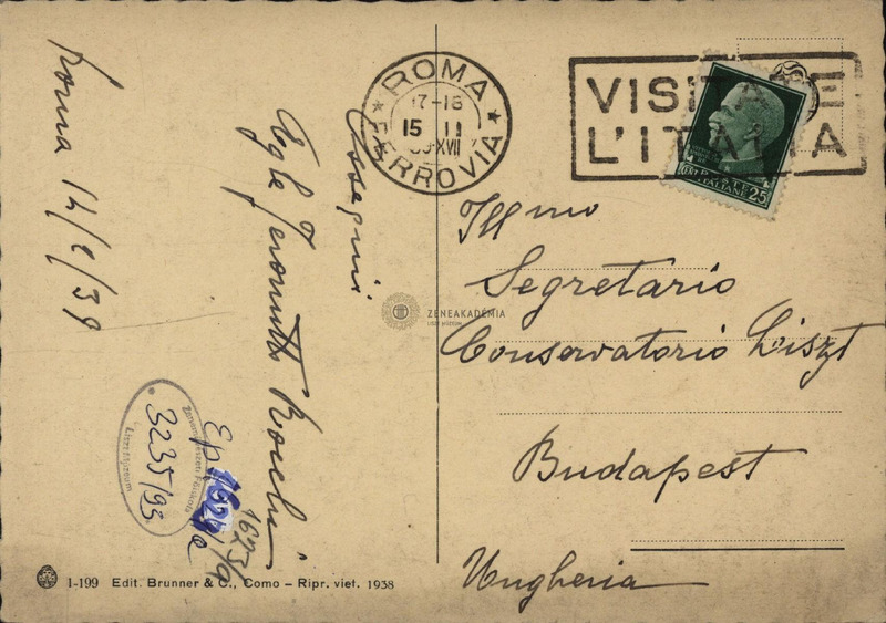 - Egle Jeromitti Rocchi levelezőlapja Isoz Kálmánhoz