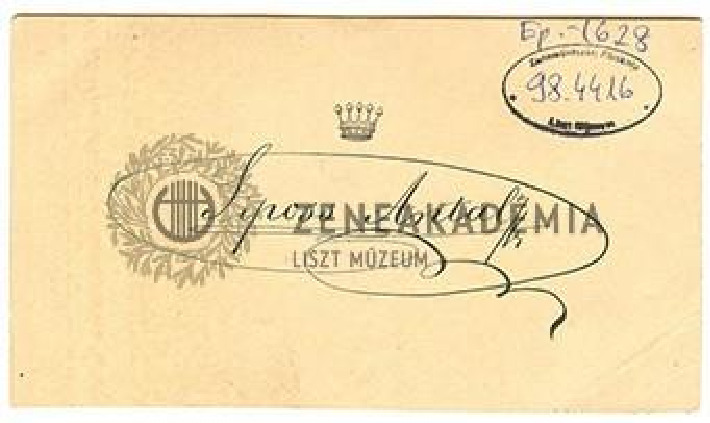 Névjegyen: „Kedves Rozália! Örvendek hogy alkalom nyilt arra, hogy magának új szerzeményemet, át nyujthassam. Ép a maga játékához való darab, mert az egész zongorát igénybe veszi. Nagy örömet szerez nekem azzal, ha befogja tanulni, s tán rövid idő múlva szerencsés lehetek ezt magától hallhatni igy. Isten áldja. Szivből üdvözli Siposs Antal”