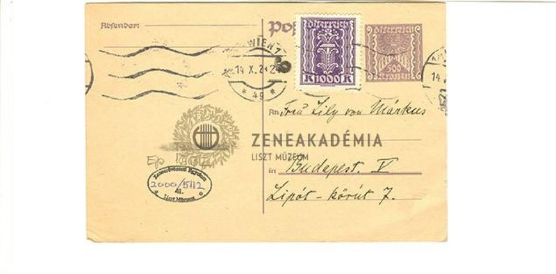 - Emil Sauer levelezőlapja Márkus Lilyhez