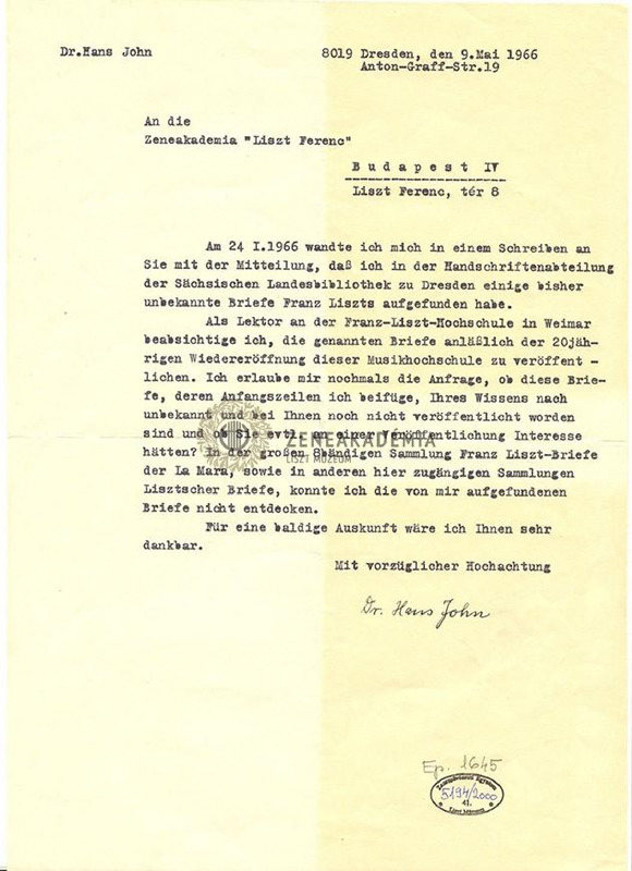 Melléklet: a drezdai Sächische Landesbibliothekban talált, eddig publikálatlan Liszt-levelek listája (14 tétel, 2 írott oldal).