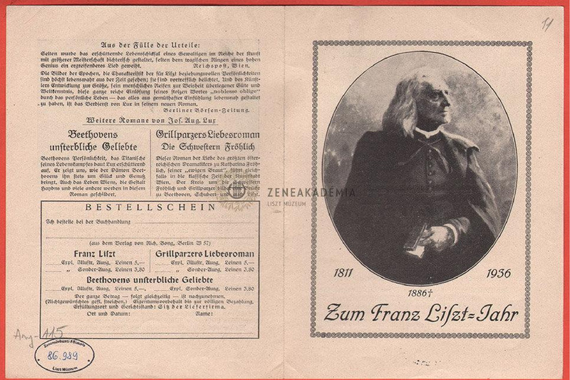 - Hirdetés Joseph Aug. Lux: Franz Liszt Himmlische und Irdische Liebe c. életrajzi regényéről.