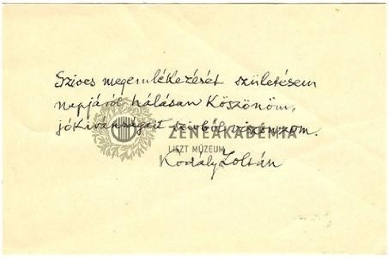 - Kodály Zoltán levelezőlapja Prahács Margithoz