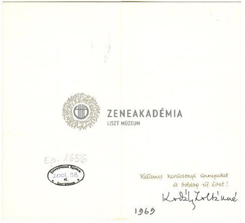 - Kodály Zoltánné üdvözlőkártyája Prahács Margithoz