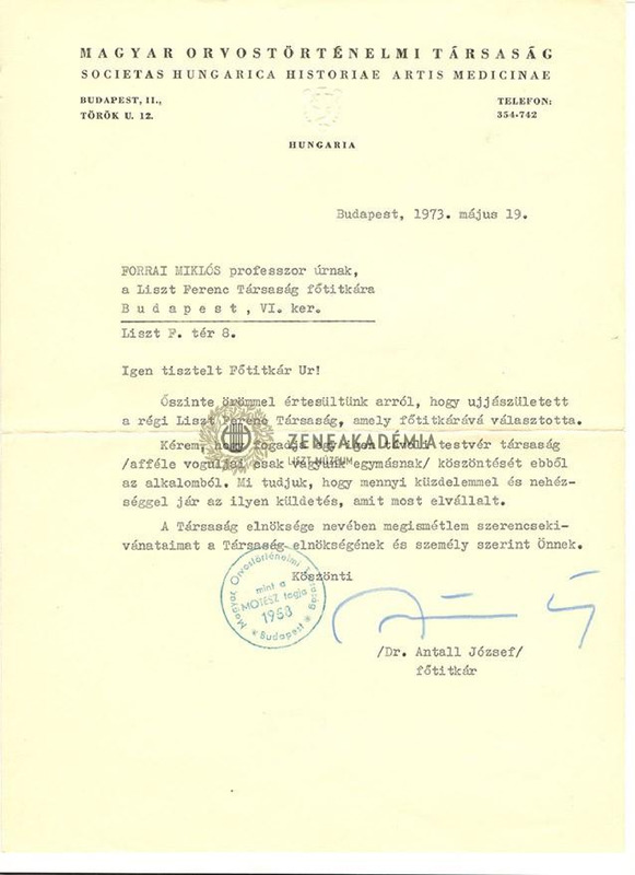 A Magyar Orvostörténeti Társaság főtitkárának üdvözlete a Liszt Ferenc Társaság újjáalakulása alkalmából.