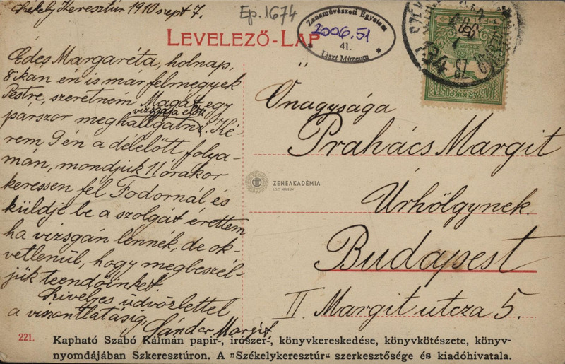 - Sándor Margit levelezőlapja Prahács Margithoz