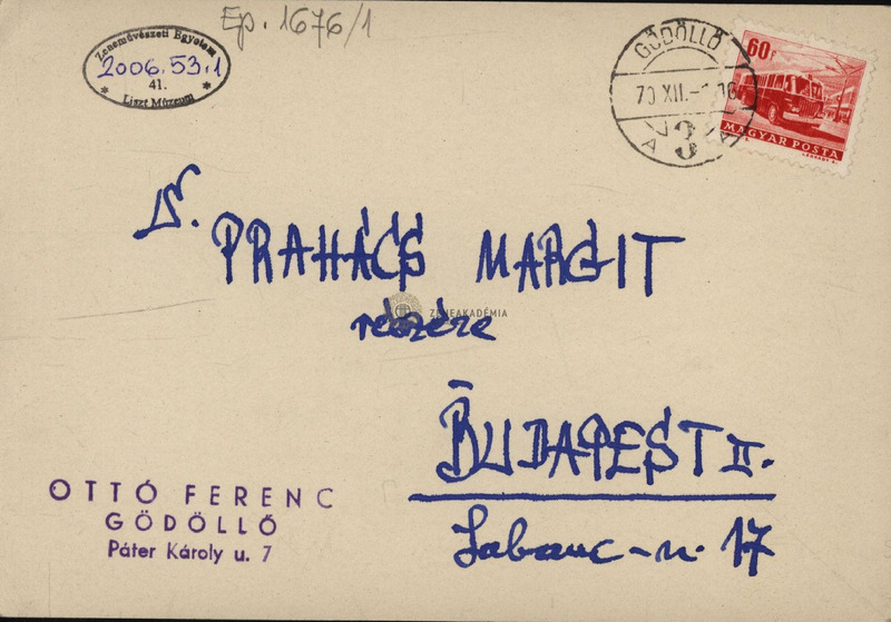 - Ottó Ferenc levelezőlapja Prahács Margithoz