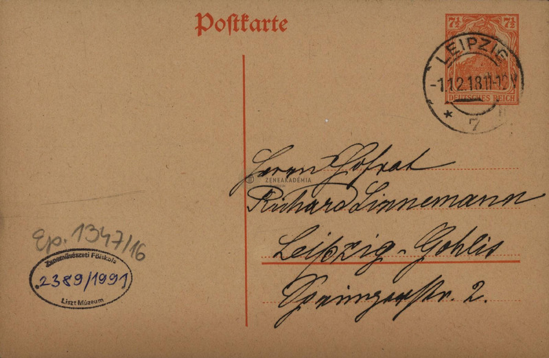- Marie Lipsius levelezőlapja Richard Linnemannhoz