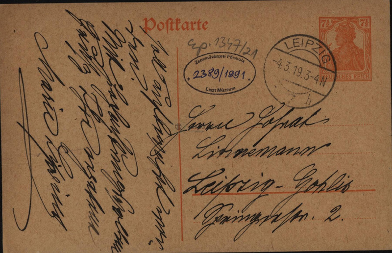 - Marie Lipsius levelezőlapja Richard Linnemannhoz