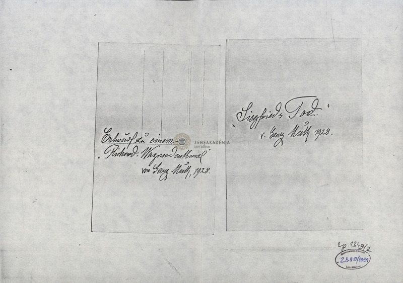 Két szoborterv képét küldi. Melléklet: 2 db fotó, Siegfrieds Tod és R. Wagner-Denkmal.