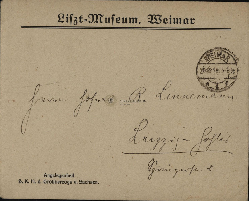 Liszt-Museum Weimar levélpapírja és borítékja. Értesíti a levélgyűjtemény átvételének időpontjáról (okt. 22. 16 óra).