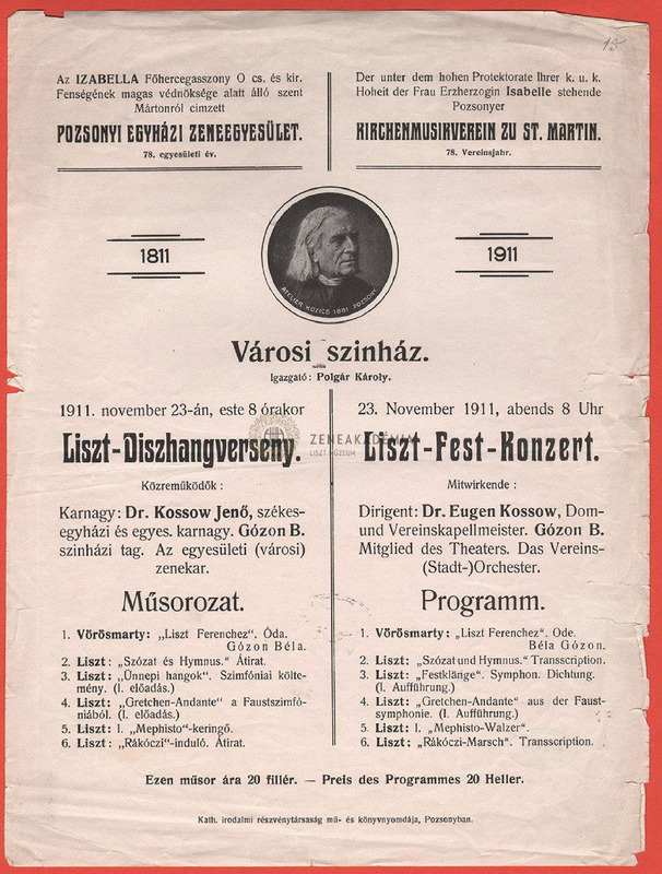A Pozsonyi Egyházi Zeneegyesület Liszt koncertjének műsora.