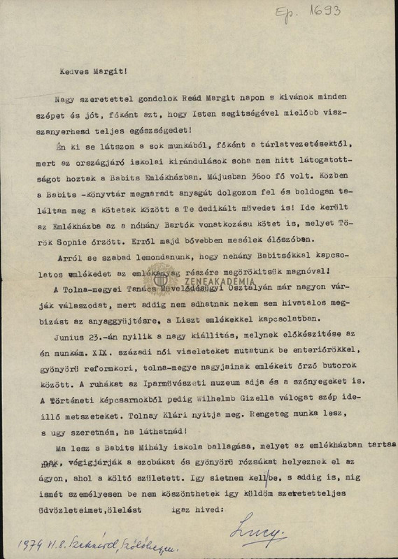 Mohayné Vendel Lucy levele Prahács Margithoz