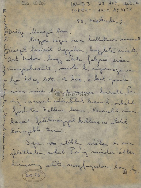 Levélíró 1926-7-ben Bartóknál tanult. Melléklet: hírlapkivágat, The New York Times 1971.01.31. Schonberg, Harold C.: Have you heard about Liszt?