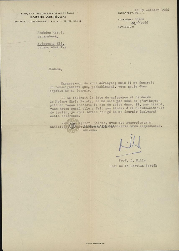 Denijs Dille levele Prahács Margithoz