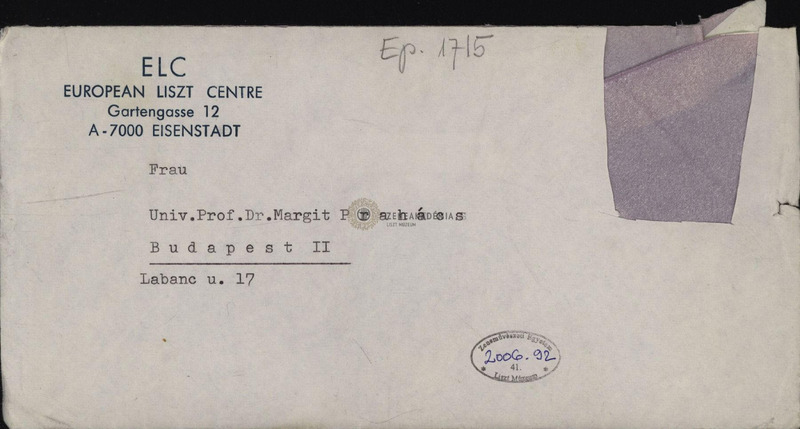 Kapcsolatfelvétel az European Liszt Centre és a magyar Liszt Társaság között. Címzett új könyve kiadásának támogatása. Melléklet: ELC belépési űrlap.