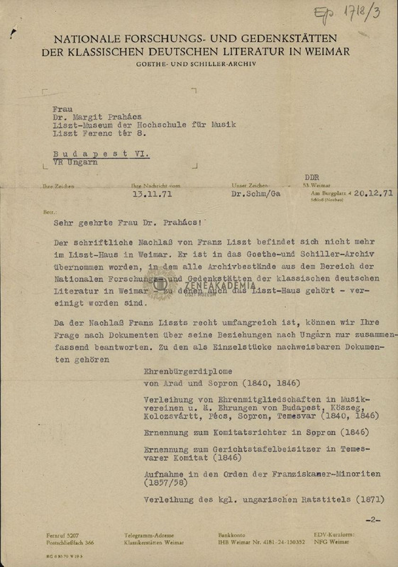 A weimari Goethe- und Schiller-Archiv bőséges Liszt-dokumentumait legcélszerűbb lenne helyben tanulmányozni.