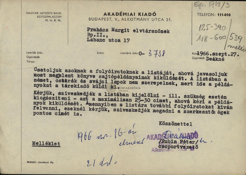 Folyóiratok listája, ahová az új könyv sajtópéldányának kiküldését kéri.